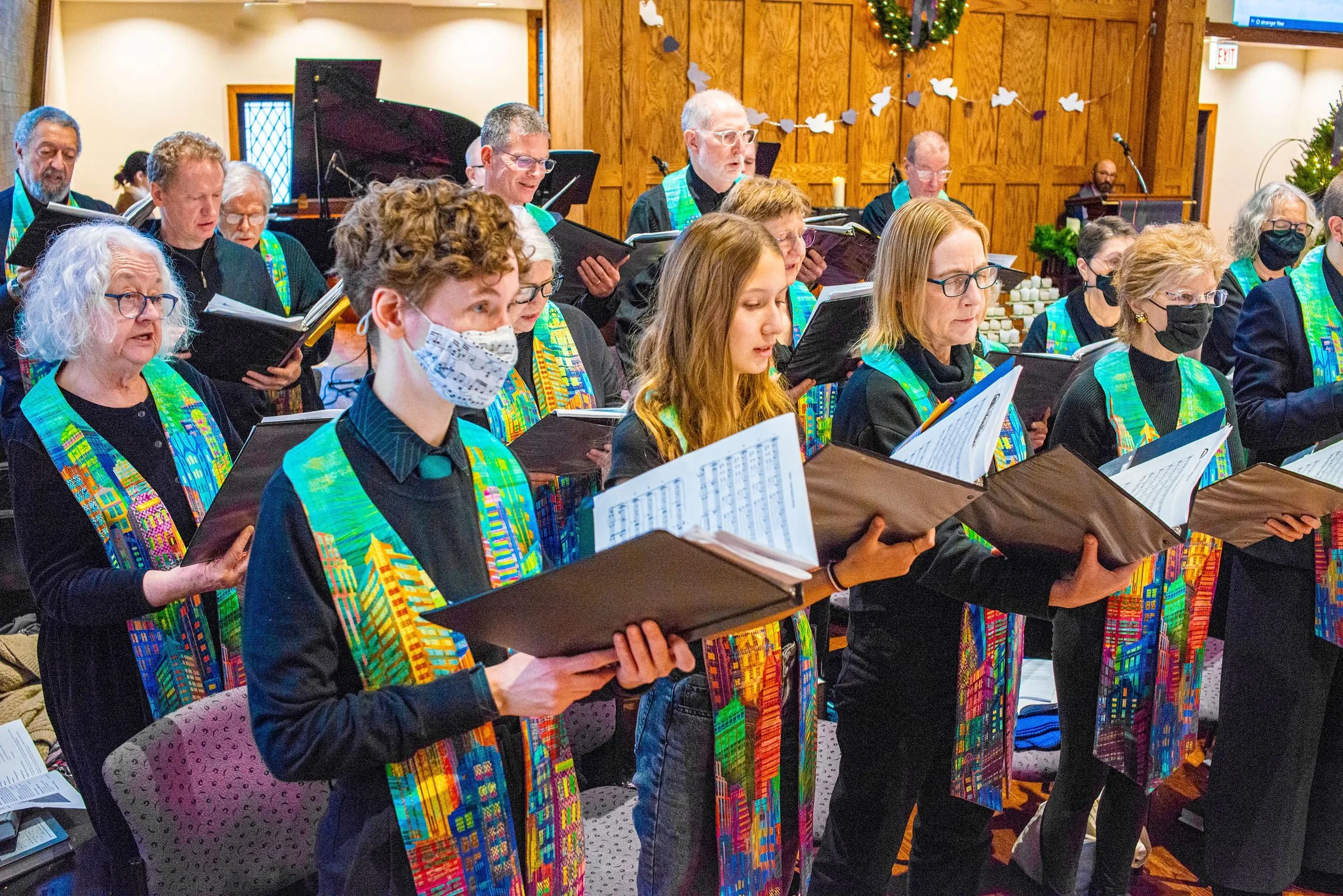 This 30-plus member, non-auditioned ensemble sings for services twice a month, from September through June. This choir sings a wide variety of musical genres, including two Music Sunday services, when they perform major works. Rehearsals are held every Thursday night from 7:15-9:00 in the sanctuary. New members are always welcome to join.